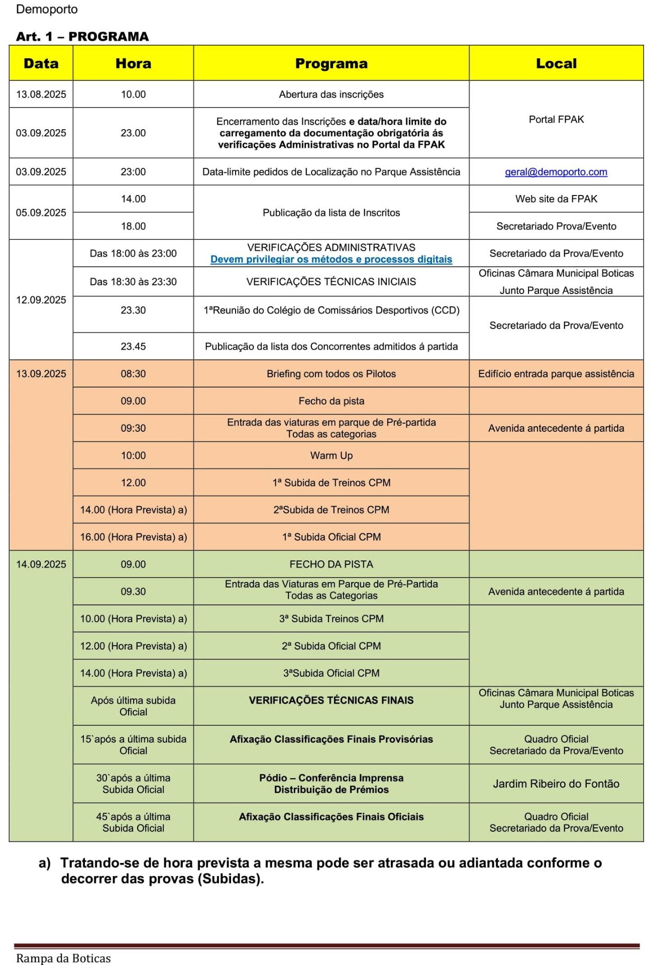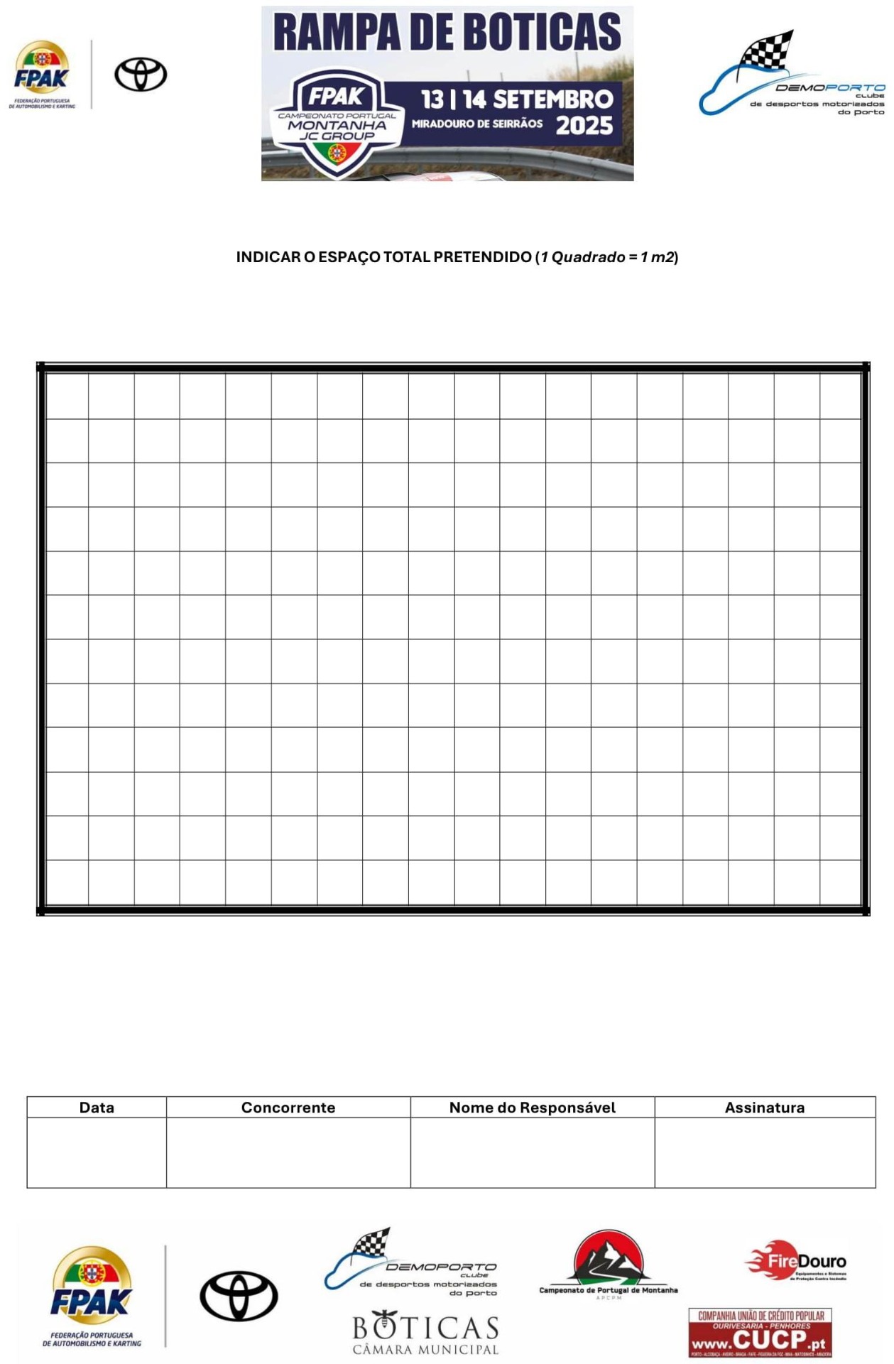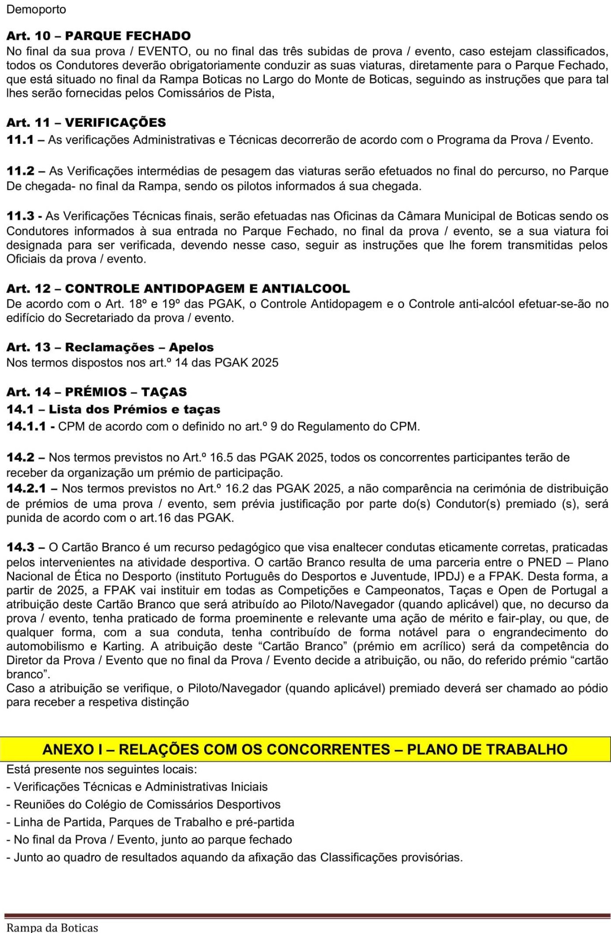 Lista de Inscritos + Constituição CCD N.º 1 + Aditamento N.º 1 + Regulamento Particular + Formulário Parque de Assistência + Parque Assistência Layout