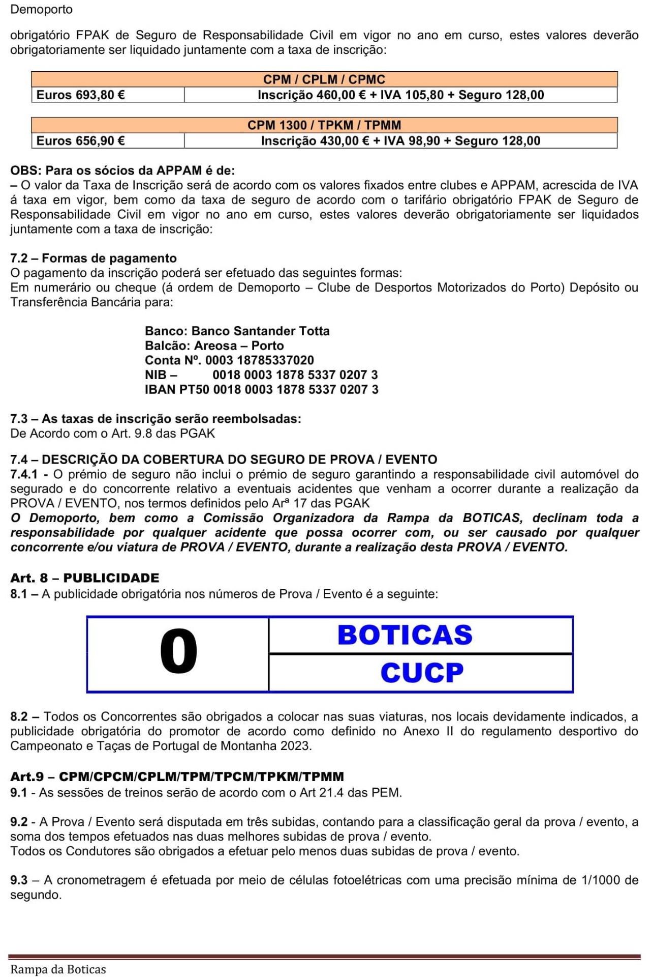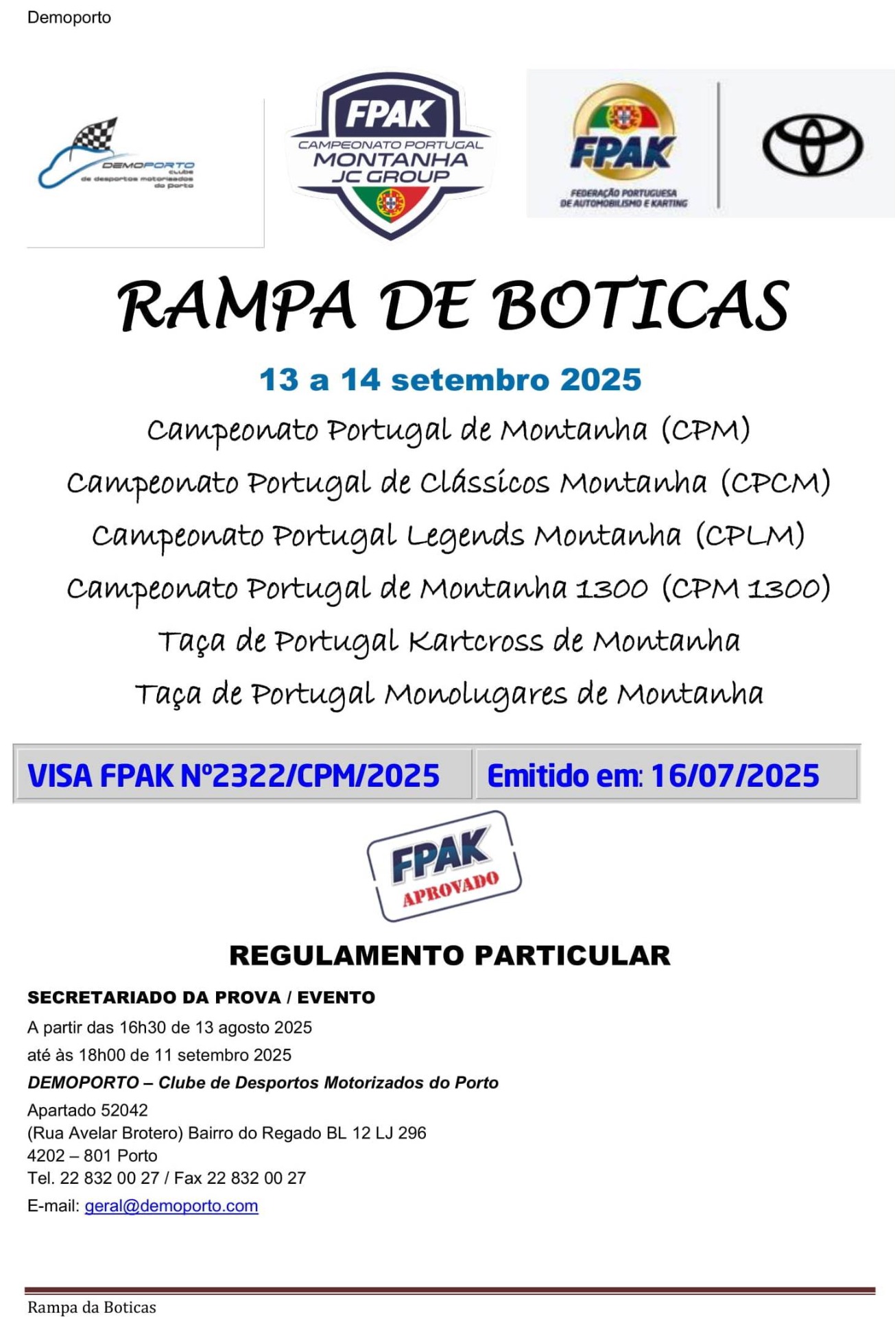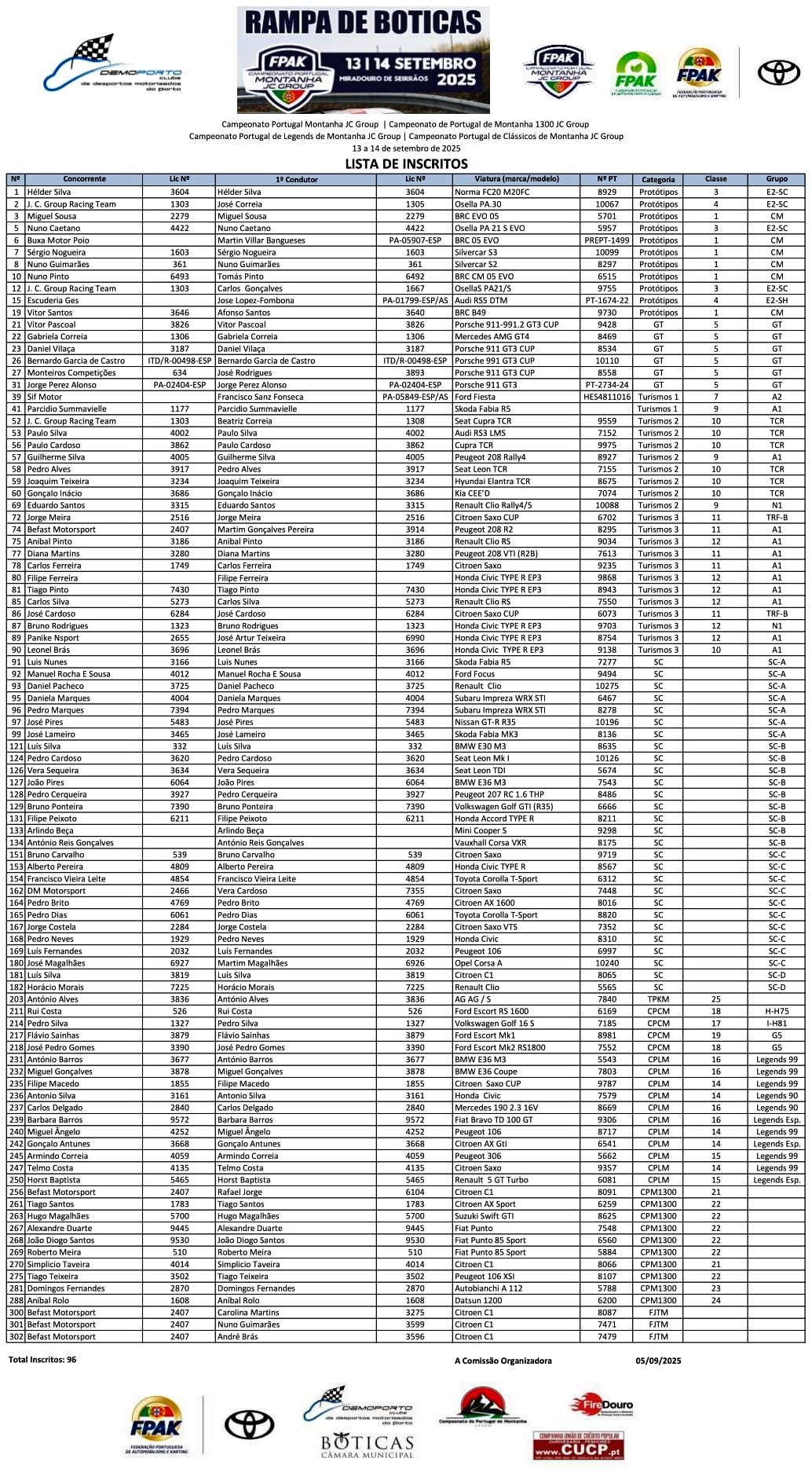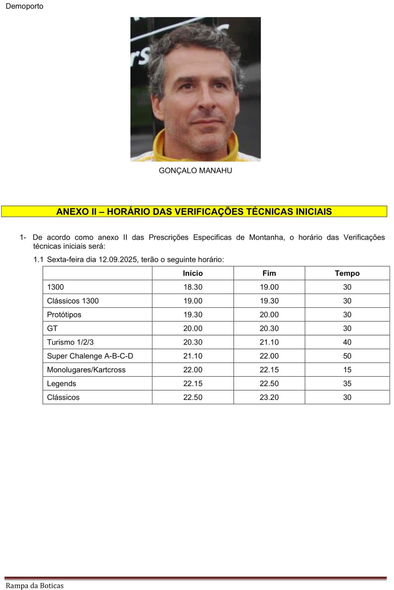Lista de Inscritos + Constituição CCD N.º 1 + Aditamento N.º 1 + Regulamento Particular + Formulário Parque de Assistência + Parque Assistência Layout